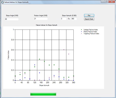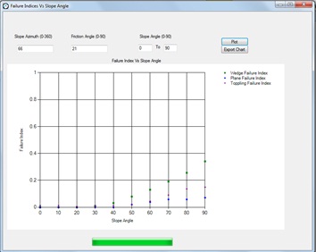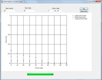evaluate the change of failure indices with changing friction angles, slope angles,