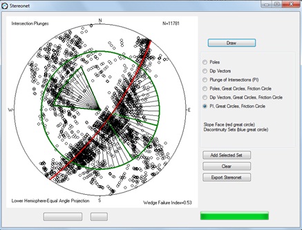 The ‘Wedge Failure’ tool opens the wedge failure analysis window.