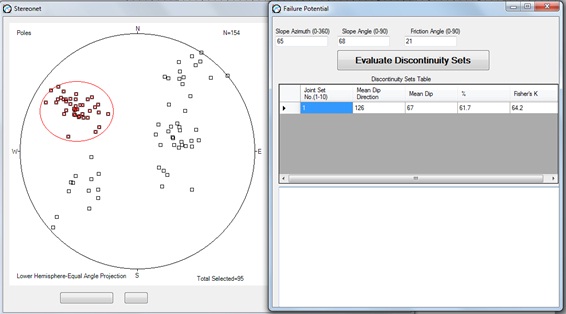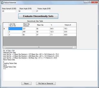 ‘Failure Indices’ window and discontinuity set evaluation within the