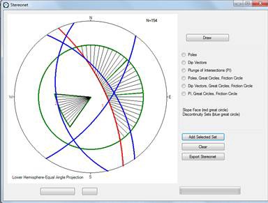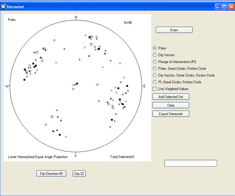 plotted on the stereonet by clicking ‘Draw’ button. Based the symbol